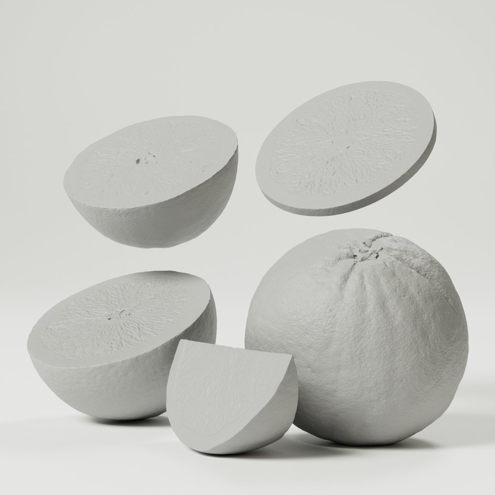 You will receive 5 × photorealistic digital oranges (1x full/ 2× halves/ 1x slice/ 1x quarter) with 8k texture maps. It has organized non-overlapping uv`s and a decent topology which supports further editing and a lot of detail. With the 3D model (formats: fbx, obj) there is a diffuse, roughness, displacement, sss, RGB mask and normal map.